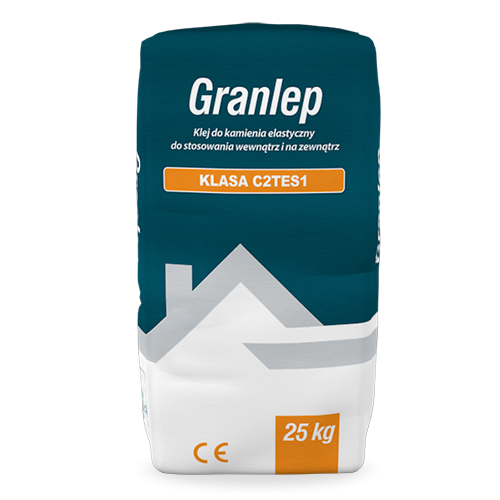 To specjalistyczny biały klej cementowy do przyklejania okładzin z granitu, marmuru, kamieni naturalnych, jasnych wapieni i innych skał gruboziarnistych oraz do płytek ceramicznych, gresowych, elewacyjnych, klinkierowych oraz wszelkich odmian mozaiki np. szklanej i ceramicznej. Do stosowania wewnątrz i na zewnątrz budynków oraz na ogrzewanie podłogowe. Charakteryzuje się zwiększoną przyczepnością, zmniejszonym spływem z powierzchni pionowych oraz wydłużonym czasem otwartym pozwalającym nawet na przyklejenie płytek do 30 minut od położenia kleju na podłoże. GRANLEP jest odkształcalną (S1), cementową zaprawa klejącą (C) o podwyższonych parametrach (2), bez efektu spływania (T), o przedłużonym czasie schnięcia otwartego (E) klasy C2TES1.