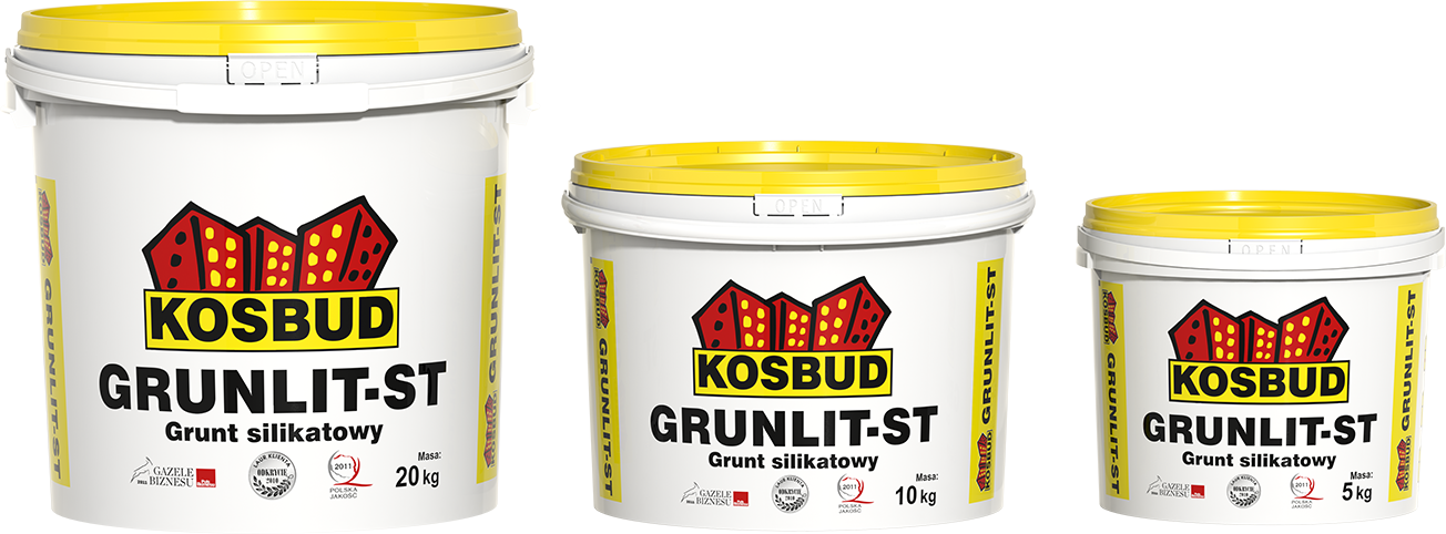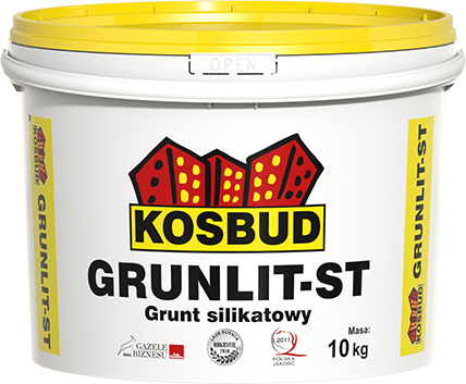 GRUNLIT-ST – służy jako podkład pod warstwę silikatowej wyprawy tynkarskiej w pracach ociepleniowych systemu KOSBUD- W oraz do gruntowania i wzmacniania innych podłoży ściennych pod powłoki malarskie i wyprawy tynkarskie. Reguluje warunki wodne podłoża oraz dodatkowo wzmacnia zabezpiecza je przed działaniem wilgoci.