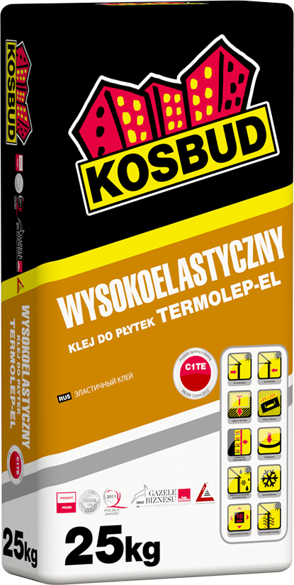 Zaprawa TERMOLEP-EL jest przeznaczona do przyklejania wszystkich mało i wielkoformatowych płytek ceramicznych tj. glazury, terakoty, klinkieru, gresu, do podłoży sztywnych, jak i podatnych na odkształcenia, wewnątrz i na zewnątrz budynków. Zalecany na tarasy oraz jastrychy z ogrzewaniem podłogowym.