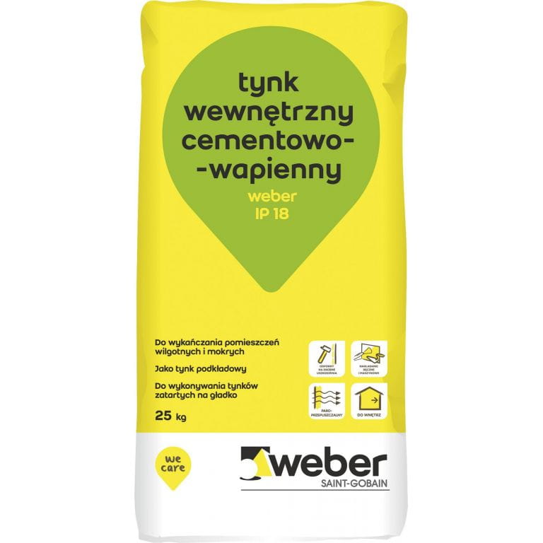 Tynk weber IP18 jest cementowo-wapiennym tynkiem podkładowym pod kolejne warstwy wykończeniowe w budynkach mieszkalnych oraz w obiektach handlowych, przemysłowych, oraz użyteczności publicznej. Służy do: